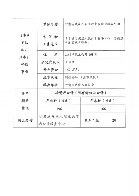 甘肃省残疾人职业教育和就业服务中心2025年度事业单位法人年度报告书