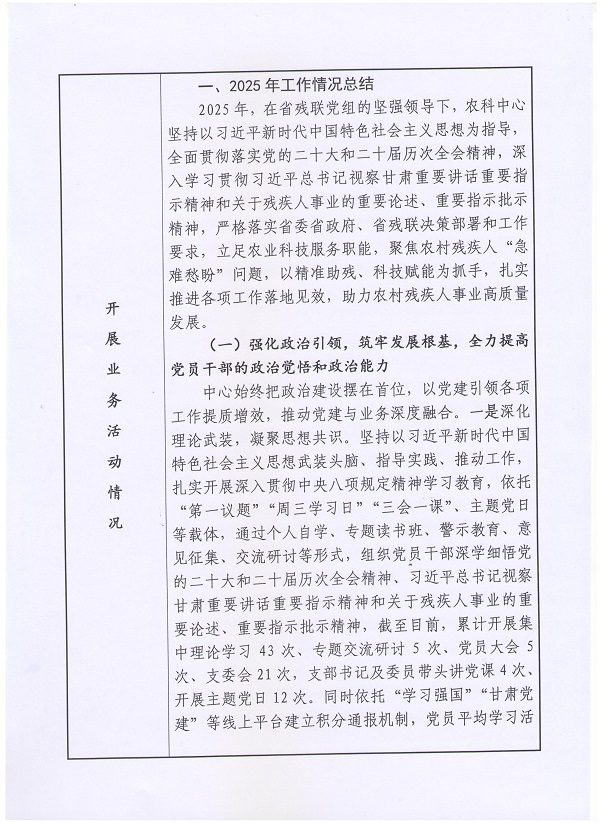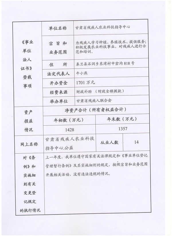 甘肃省残疾人农业科技指导中心2025年事业单位法人年度报告书