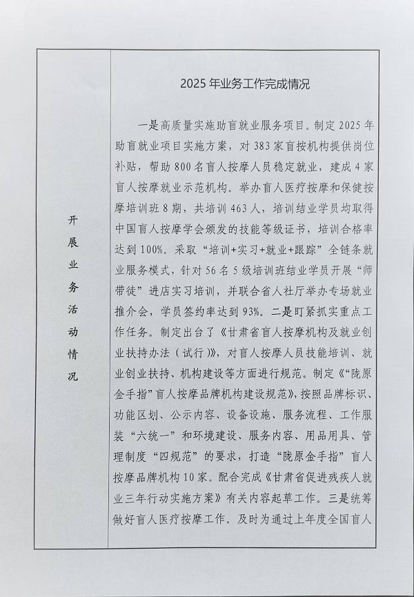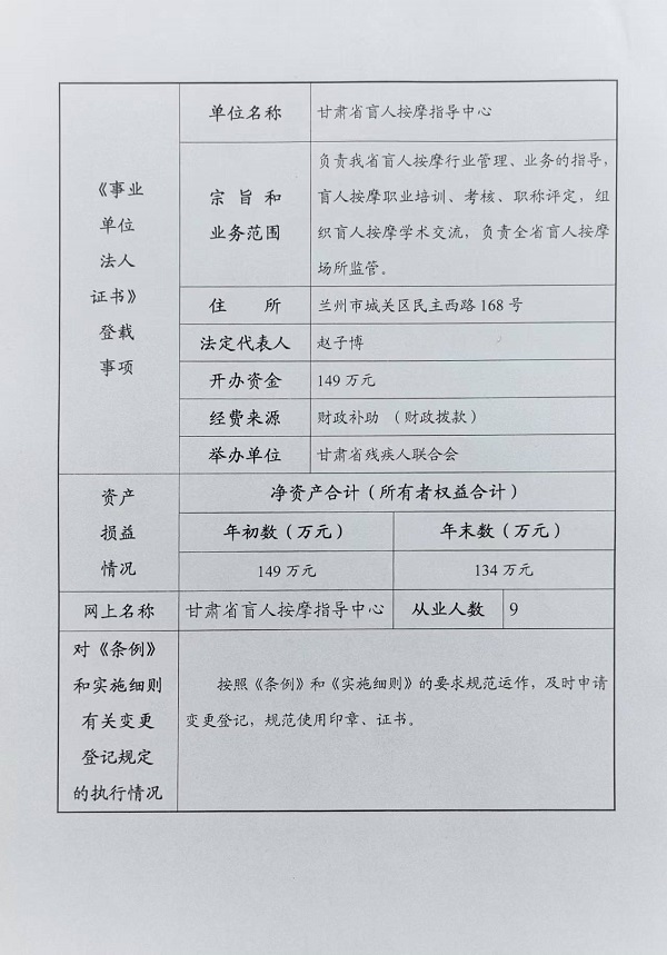 甘肃省盲人按摩指导中心2025年事业单位法人年度报告书