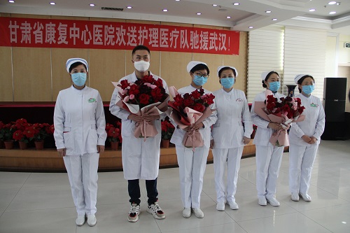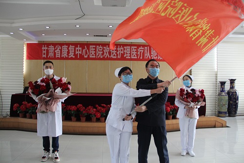 白衣一袭赴江城,敬佑生命驱病瘟。武汉新冠疫情发生后,我省迅速组织力量驰援武汉,聚力新冠肺炎疫情防控,“甘肃力量”在不断汇聚。2月17日,甘肃省康复中心医院3名队员肩负崇高使命,怀着必胜信心,随甘肃省第五批援助湖北医疗队再次出征。这是省康复中心医院之前已经送出5名护理人员驰援武汉后,又一批出发的援鄂人员。甘肃省残联党组成员、副理事长蒋录基,医院党政班子为他们举行了简短而庄严的出征仪式。