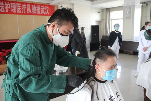 此次医院首次派出了一名男护,急诊科火统武,25岁的小伙子声情并茂地说:“此次疫情严重,作为一名医务工作者,奔赴一线,义不容辞!”脊髓损伤康复科张玉梅护师说:“当她爸爸知道她主动请战支援武汉时,鼓励她作为专业医疗人员,抗击疫情,责无旁贷!”急诊科许娜梅护师说:“希望能够在这次抗击疫情中贡献出自己的微薄力量,也希望疫情尽快过去,我们可以一起逛街,一起聚会……”这是一支实力强劲、专业过硬、应变能力强、配合默契而温情的优秀队伍。他们为了能更好地节省穿脱防护服时间、最大限度的减少可能的感染,毅然决定剪去飘飘长发,以“全新造型”奔向第一线。美发店得知要为这些奔赴一线的“英雄”们剪发时,特地派人上门服务并减免了全部免费。
