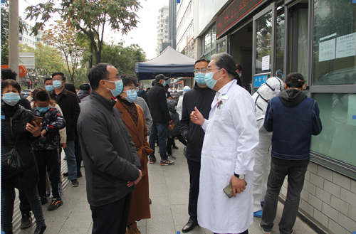 一是要高标准完成核酸检测任务。中心全体人员要提高政治站位,加强统筹协调,始终绷紧疫情防控这根弦,压紧压实各方责任,无条件服从服务于疫情防控工作大局,严谨高效地完成核酸检测任务。二是要加强防护措施。针对当前核酸检测人数增多的情况,要切实加强核酸检测采样点防护措施,避免人员聚集,确保采样群众保持一米线、戴口罩,减少人群扎堆,避免在核酸检测过程中感染的风险。三是要加强医院管理,统筹兼顾做好医院就医人员和医护人员的健康和安全。做好一线人员的后勤保障工作,科学合理安排工作,确保正常的就诊秩序和医务人员合理工作负荷。要严格落实“戴口罩、扫码、测温”等防控措施,确保预检分诊、病区陪护探视管理、定期核酸检测、院内环境消毒等制度措施执行到位,坚决杜绝院感事件发生。