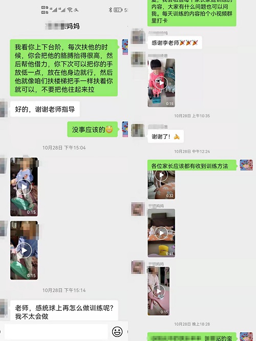 在患儿家长的大力支持与配合下,合作医院儿童康复科医生、治疗师根据不同孩子病症情况,科学分类地制定了具体的康复教学训练计划,并把每天的康复训练重点传送给患儿家长,有的放矢、有针对性地进行教学、指导和点评,耐心细致地解答家长问题,尽心尽责地开展康复教学训练,让爱在严寒酷冬的疫情中不断绵延……